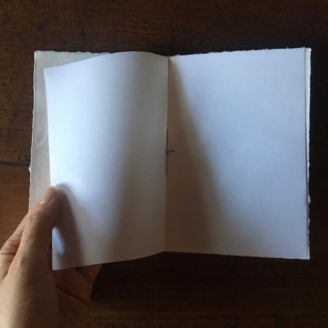 Biglietto stampato in lineoleografia (due matrici e due colori) su carta Graphia 270 gr. Inserto interno per scrittura in carta di riso giapponese, rilegato a filo in contrasto. 11,5x16cm. Busta inclusa.