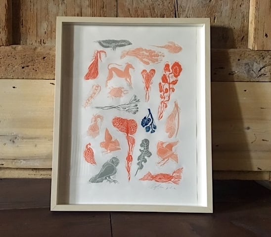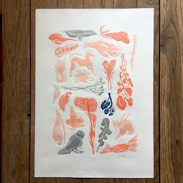 Linoleografia 35x50 cm. a 22 matrici e quattro colori su carta Graphia 170 gr. Tiratura a 20 esemplari numerati e firmati, di cui 10 in nero.